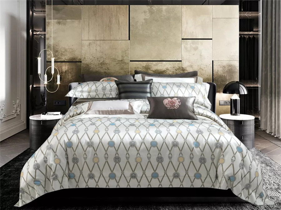 高支高密的全棉提花面料,質(zhì)地柔軟、細(xì)膩、爽滑,光澤度好,懸垂性及透氣性好,吸水性強(qiáng),觸感也極為柔軟。